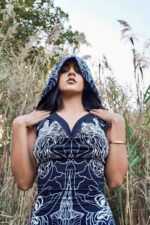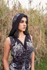 Be the first to review “Black Astral hooded dress with a white print” Cancel reply